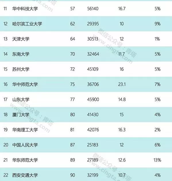 Chinesische Universitäten zeigen in diesem Jahr wie zuvor eine starke Leistung: Insgesamt wurde 101 Universitäten auf die Liste gesetzt, darunter 63 Universitäten auf dem Festland, 6 in Hongkong, 1 in Macao und 31 in Taiwan. Die Tongji-Universität liegt auf dem Platz 53 im Ranking und belegt den zehnten Platz bei den Universitäten auf dem Festland.