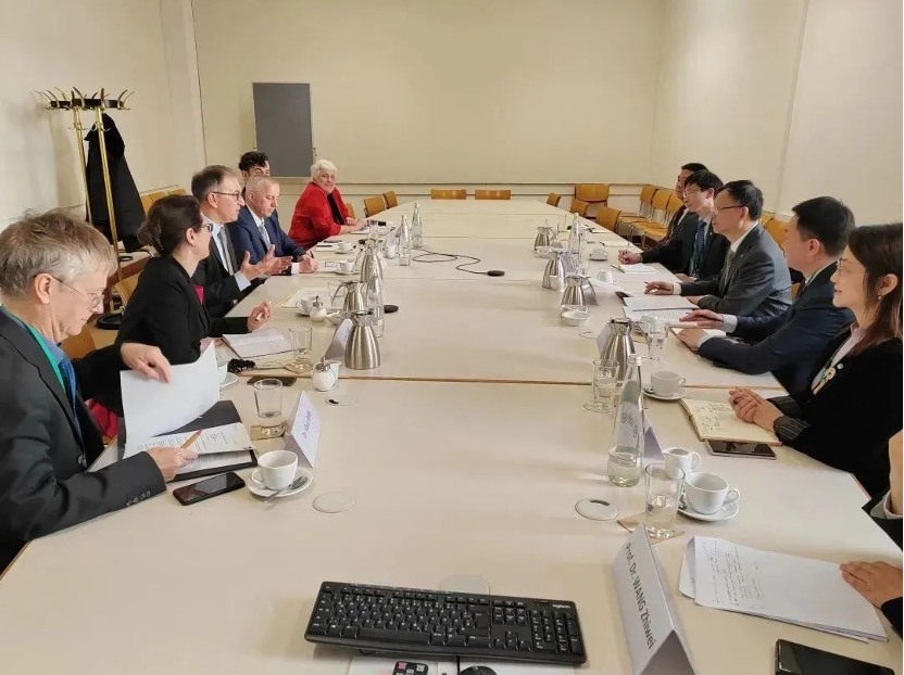 Während ihres Aufenthaltes in Deutschland führten Tanja Brühl, Präsidentin der Technischen Universität Darmstadt, Geraldine Rauch, Präsidentin der Technischen Universität Berlin und Michael Hoch, Präsident der Universität Bonn und Michael Harms, stellvertretender Generalsekretär des Deutschen Akademischen Austauschdienstes (DAAD) sowie Klaus Birk, Direktor der Strategieabteilung, ihre Delegationen zu einem intensiven Austausch mit der Delegation der Tongji-Universität.