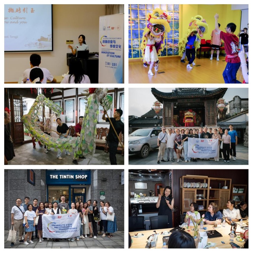 In Bezug auf die traditionelle Kultur hörten die Studierenden nicht nur eine Reihe von thematischen Vorträgen über die chinesische Kultur und den Drachentanz, sondern besuchten auch die Drachen- und Löwenhalle in Sanlin, erlebten den Drachen- und Löwentanz persönlich und erlangten ein tieferes Verständnis der chinesischen Kultur. Darüber hinaus besuchten die Studentinnen und Studenten den Tim und Struppi Themenladen und nahmen unter der Leitung von Lehrern des Sino-Französischen Instituts für Ingenieurwesen und Management an der thematischen Stadtrundfahrt „Shanghais französischer Einfluss“ teil. Diese Route wurde vom UHC-Team von Professor SHAO Yong, Kolleg für Architektur und Stadtplanung auf der Grundlage des neuen Buches „Französische Architektur in Shanghai“ des Teams vom Akademiemitglied ZHENG Shiling angepasst.
