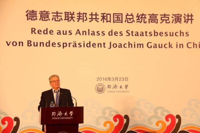 Mit diesen Worten eröffnete Bundespräsident Joachim Gauck seine Rede an der Tongji-Universität vor über 300 Studierenden und Professoren.
